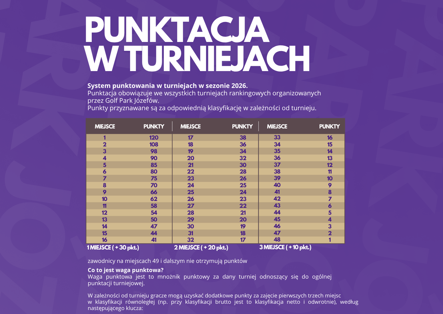 Klasyfikacja Generalna to cykl łącznie 7 turniejów - 4 turnieje MAJORS, które rozgrywamy lokalnie w Golf Park Józefów, 2 wyjazdowe - rozgrywane na 18 dołkowych polach i dodatkowo rywalizację MyJoys Matchplay.